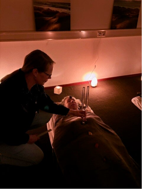 Tijdens een individuele ontspanningsbeleving lig je op de behandeltafel in mijn praktijkruimte. Je hebt je kleding aan en alleen je schoenen uit.